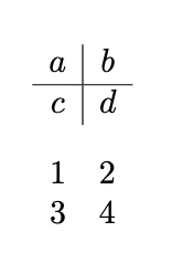 array | 수식 안에서 행과 열을 사용해 표(table)처럼 만드는 환경 (열 정렬 옵션 사용) | amsmath |