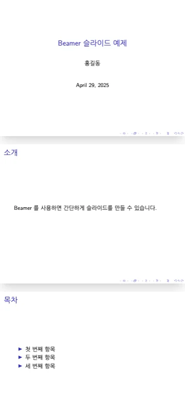 frame | 슬라이드(프레젠테이션)를 프레임으로 만드는 환경 | beamer 클래스 |