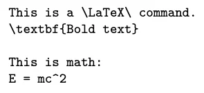 LaTeX은 기본적으로 특수문자(\, {}, %…)를 명령어로 해석하는데, 가끔은 이런 특수문자를 있는 그대로 출력해야 할 때가 생길 수 있어요. verbatim 환경은 코드나 텍스트를 해석하지 않고 있는 그대로 보여주는 환경입니다.