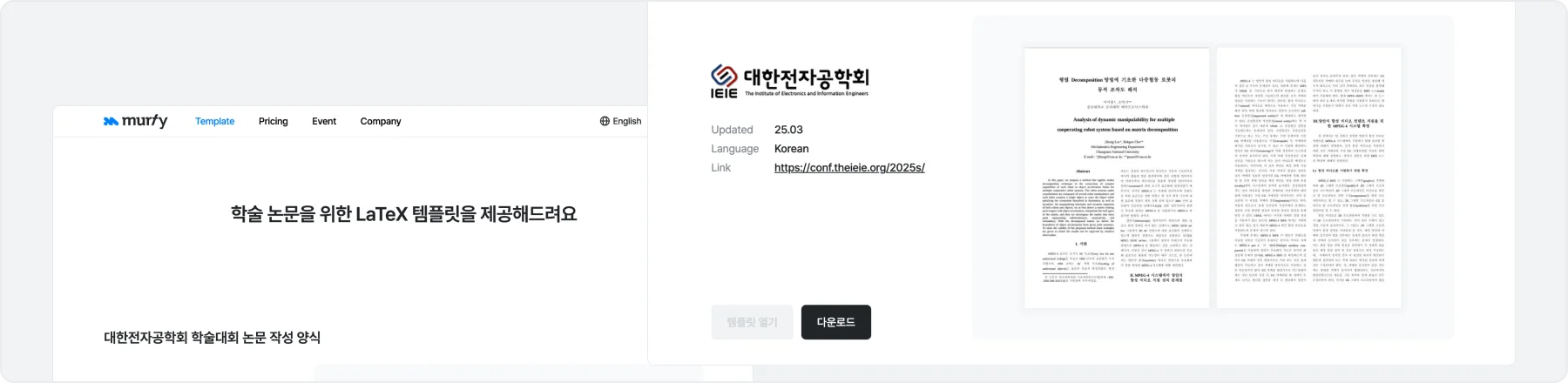 현재 국내 학회의 경우 한글 LaTeX 에디터 환경과 템플릿을 제공해,